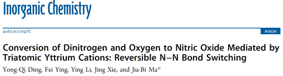 硝酸是重要的工业产品。目前,商业硝酸是通过Haber–Bosch工艺和Ostwald氧化过程组成的两步法生产的。利用N2和O2直接制NO最有利且最直接的方法。由于该反应的高吸热性(+43.1 kcal/mol),致使在温和条件下N2和O2反应生成NO几乎是不可能的。ob真人马嘉璧教授课题组近日在热化学条件下,通过纯金属Y3+阳离子与一个N2分子和两个O2分子的反应,实现了利用纯金属团簇室温偶联N2和O2的反应。相关成果以“Conversion of Dinitrogen and Oxygen to Nitric Oxide Mediated by Triatomic Yttrium Cations: Reversible N–N Bond Switching”为题,发表在国际权威期刊《Inorganic Chemistry》(2023, 62, 6102–6108)。化学与化工学院博士生丁永奇为第一作者,马嘉璧教授为论文的通讯作者。特别感谢化学与化工学院的谢静教授团队(英飞同学)对本工作在高精度理论计算数据的指导和帮助。