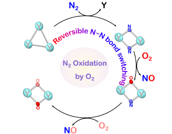 图1:Y3+阳离子团簇与N2和O2反应示意图。