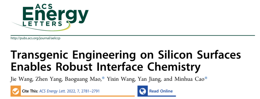 近日,ob真人化学与化工学院曹敏花教授团队在锂离子电池硅负极研究领域取得重要进展,相关研究成果以“Transgenic Engineering on Silicon Surfaces Enables Robust Interface Chemistry”为题,在《ACS Energy Letters》期刊上在线发表(DOI: 10.1021/acsenergylett.2c01202)。