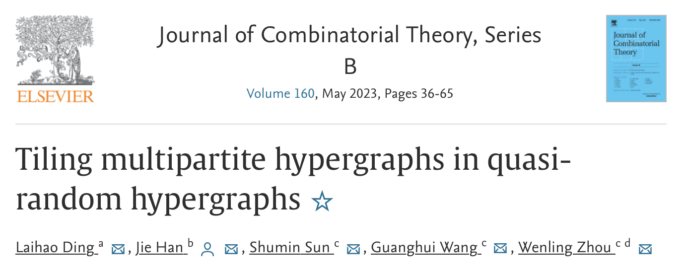 日前,ob真人数学与统计学院韩杰教授在国际权威期刊《Journal of Combinatorial Theory, Series B》连续发表题为“Tiling multipartite hypergraphs in Quasi-random Hypergraphs”和“Embedding clique-factors in graphs with low l-independence number”的两篇研究论文。此两篇论文研究了具有一定随机性的图与超图中F因子的存在性问题,给出了渐近最优的度条件和密度条件。