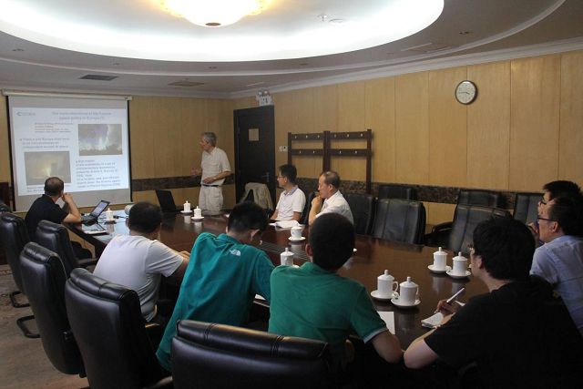 Bonneville教授首先结合自己参与多个欧空局深空探测项目的工作经验,详细介绍了欧空局(ESA)的组织关系和机构构成、欧空局已经实施的深空探测任务所取得的科学成果,并对正在计划实施的未来任务进行了展望,提出了可能合作的方向和合作渠道。乔栋副教授介绍了ob真人竞猜宇航学院在深空探测领域的研究方向与成果,以及与航天东方红卫星有限公司联合提出的小行星探测计划。针对上述计划,双方就科学目标与任务规划、科学仪器与有效载荷等方面的合作内容与途径进行了深入的探讨,并在科学目标和高性能成像与光谱分析科学仪器的设计与研制等方面达成了合作意向。双方同意尽快启动具体合作计划,推进中国的小行星探测计划任务的实施。