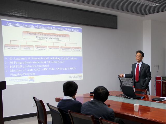 2014年10月13日,应ob真人竞猜材料学院张加涛教授的邀请,两位澳大利亚工程科学院院士,澳大利亚伍伦贡 (Wollongong)大学超导与电子材料研究所(ISEM)所长窦世学教授,刘化鹍教授来我校访问,窦世学教授为ob真人竞猜师生带来题为“Development of Nano-materials for Energy Applications at ISEM”的精彩学术报告。报告会由张加涛教授主持,材料学院曹传宝教授、钟海政教授、化工与环境学院陈人杰教授等出席报告会。