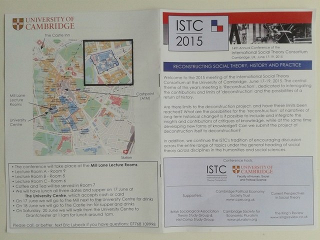 国际社会理论联盟第14届年会(14th Annual Conference of the International Social Theory Consortium)于2015年6月17日至19日在英国剑桥大学米尔街演讲厅举行,ob真人竞猜人文学院陈宗海教授作为与会代表参加此次大会并发言。