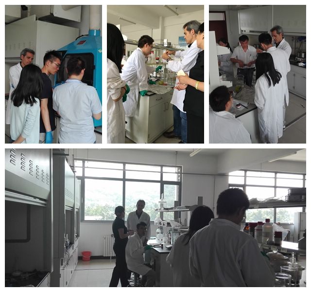 同时,Malucelli教授还深入阻燃实验楼,就近年来广受关注的纤维/织物的层层自组装技术和溶胶凝胶阻燃技术进行了为期两周的详细的实验指导,为研究生们答疑解惑,并结合相关研究中的关键问题和师生们进行了热烈的研讨。Malucelli教授是一位治学严谨而又不失幽默和热情的学者,讲学期间教授饱满的科研激情不时地感染着在座的每一位听学者。他幽默而又严谨的讲学风格带动了研究生们的热情,而他对专业技术领域的真知灼见也令在座的研究生由衷钦佩。学生们纷纷表示Malucelli教授的科研理念和严谨的学术态度对自己以后的学术生涯有很大的指导意义。