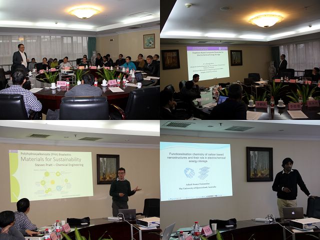 论坛共分为两部分:11月21日在中关村校区国际教育交流大厦三层第三会议室举行大会报告;11月22日在中关村校区5号楼502报告厅举行专题学术讲座。出席论坛的有:澳大利亚昆士兰大学Xiusong Zhao教授、Jin Zou教授、Chengzhong Yu教授、Steven Pratt博士和Ashok Kumar博士以及ob真人竞猜材料学院的曹传宝教授、张加涛教授、陈棋教授、钟海政教授以及联合中心部分老师和学生代表。