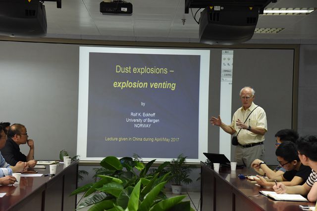 Rolf K. Eckhoff教授现为欧洲科学院院士、欧盟联邦工程化学协会终身特邀专家及欧盟防爆委员会委员,是国际著名的粉尘爆炸专家,先后出版有关粉尘爆炸研究著作3部,发表论文120余篇。他也是Journal of Loss Prevention in the Process Industries等众多国际著名期刊的编委,曾荣获波兰科学院W. Cybulski奖章,并于2005年作为唯一境外专家参加了美国化学品安全与危害调查委员会在华盛顿召开的公开听证会,讨论如何应对美国日益增加的的工业粉尘爆炸事故。