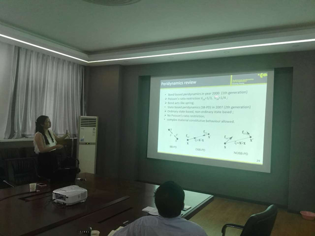 庄晓莹教授于2011年获得英国杜伦大学计算力学方向博士学位,同年获得Zienkiewicz(辛科维奇)计算力学最佳博士学位论文奖,2015年获德国洪堡基金会授予青年科学家最高奖项索菲亚-科瓦雷夫斯亚奖,是首位力学方向获奖者。报告中,庄教授提出了一种对偶近场域的概念,将颗粒之间互相施加作用力和反用力的近场域分离,从而解决了变近场域引起的虚假应力问题,并将该方法应用到了复合材料断裂和流固耦合的计算中。