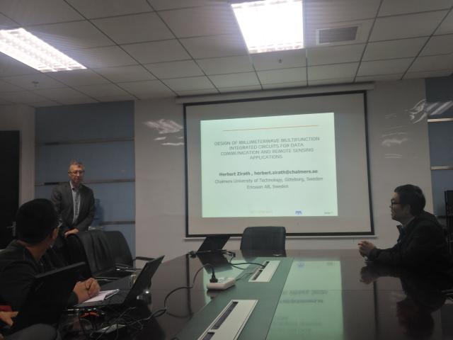 编辑:曹安琪 审核:司黎明 阅读次数:2017年11月8日,瑞典查尔姆斯理工大学教授Herbert Zirath应邀来访ob真人竞猜信息与电子学院,并作了题为《Design of Millimeter wave Multifunction Integrated Circuits for Data Communication and Remote Sensing Applications》的学术报告。Herbert Zirath教授是微波和微电子领域的国际知名专家、查尔姆斯理工大学微波电子实验室主任、IEEE Fellow,同时也是ob真人竞猜-瑞典查尔姆斯理工大学“高频段无线宽带信号与系统”国际联合实验室瑞典方学术责任教授。