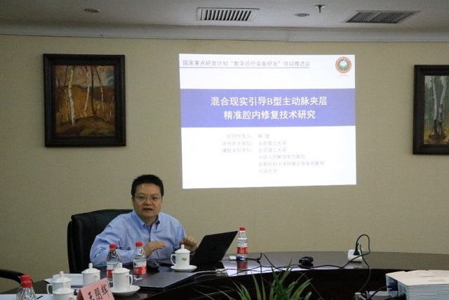 2017年12月13日,由ob真人竞猜杨健教授牵头的2017年国家重点研发计划“混合现实引导B型主动脉夹层精准腔内修复技术研究”项目启动暨实施方案论证会在校顺利召开。中国生物技术发展中心前沿处处长王德平、ob真人竞猜科学技术研究院高新部部长黄华、光电学院院长郝群、生命学院副院长唐晓英、ob真人竞猜陈端端教授,东南大学杨冠羽教授、陈阳教授,首都医科大学附属北京安贞医院主治医师薛玉国,中国人民解放军总医院主任医师熊江、吴晔等30余人出席会议并展开讨论。会议由杨健主持。