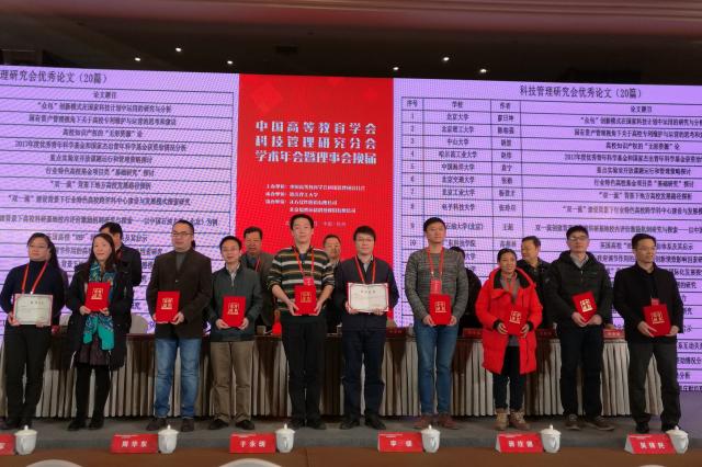 1月25日,中国高等教育学会科技管理研究分会学术年会在浙江杭州举行,教育部科技司、教育部科技发展中心、浙江省教育厅,以及承办单位浙江理工大学等单位的相关领导出席活动。来自全国100余所高校和部分省、市教育主管部门负责科技管理工作的近300名代表出席了此次年会。ob真人竞猜技术转移中心应邀参加会议,中心副主任陈柏强作为优秀论文作者代表登台领取获奖证书。
