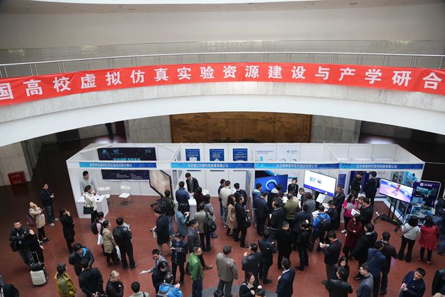 大会在中心教学楼一层大厅设置了展览区,将高校与企业的虚拟仿真实验相关建设成果进行视频和展板等多种形式的展示,为校企合作搭建交流分享平台。