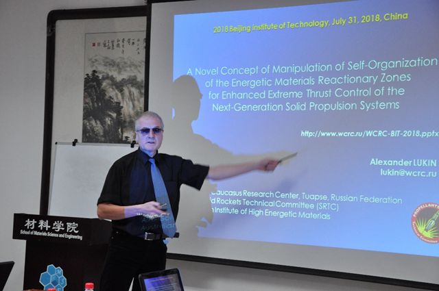 Alexander Lukin教授介绍了固体推进剂在微反应区燃烧机理的研究,和根据该理论提出的可精确控制、重复点火的推进剂系统,并介绍了设想的下一代固体火箭推进剂的特点,展示了Dr. Lukin在该领域的最新进展。