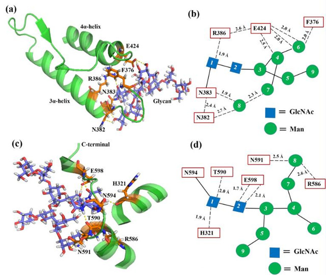 研究人员不仅从蛋白质多结构层次水平的角度对糖链和蛋白质之间的相互作用提供了独特的见解,而且促进了N-糖基化的理性设计,使其成为提高蛋白质稳定性的通用技术。相关研究发表在Journal of Physical Chemistry Letters(2018, 9, 4638−4645,IF="8.709)杂志上,该文章的第一作者是ob真人竞猜的冯旭东预聘助理教授和王小艳博士。