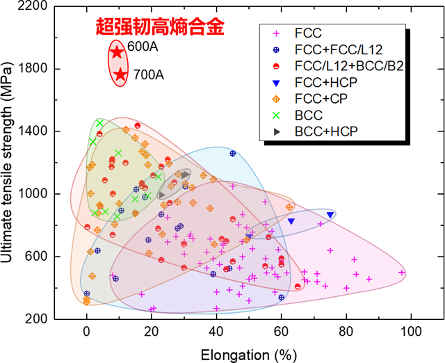 图 与已报道高熵合金力学性能对比