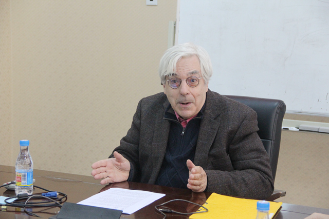 应ob真人外国语学院形式语言学研究中心邀请,法国巴黎第七大学荣休教授Alain Rouveret于2018年10月15日至28日来校进行了为期两周的学术访问,在中心教学楼515会议室作以“语言学最简方案”为主题的系列学术讲座,报告共分4场。外国语学院师生及中国社会科学院语言研究所、北京大学、清华大学、北京外国语大学以及北京语言大学等单位的师生一同聆听了讲座。讲座由外国语学院院长李京廉教授主持。
