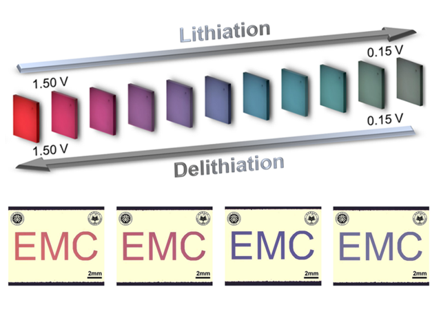 该仿生结构变色器件具有很强的设计应用前景,改变硅薄膜的初始厚度和导电集流体颜色,可以任意定制所需要的颜色调控范围。通过光刻技术,可以定制各种显色图案。并且,该变色系统和硅基锂离子电池具有良好的兼容性,在硅基锂离子电池的可视化实时监控中也有巨大的应用前景。