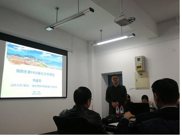 李春教授首先为大家介绍了李盛英教授的学习与工作经历;然后,李盛英教授介绍了他在细胞色素P450方面的研究工作。