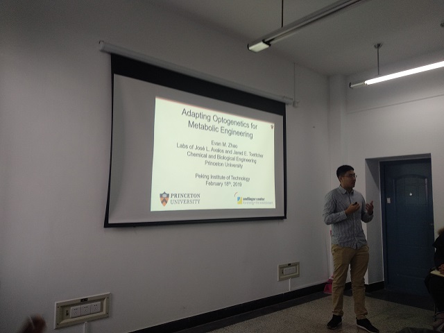 应ob真人化学与化工学院生化工程系/合成生物系统研究所邀请,美国普林斯顿大学(Princeton University)化学工程系Evan M. Zhao博士于2019年2月18日上午来到ob真人化学与化工学院生化工程系/合成生物系统研究所,为ob真人竞猜师生带来题为“Light-Dependent Pathway Enhancement for Microbial Chemical Production”的学术报告。李春教授主持本次学术报告会,化学与化工学院、求是书院、天津大学的部分教师及研究生五十余人参加了报告会。