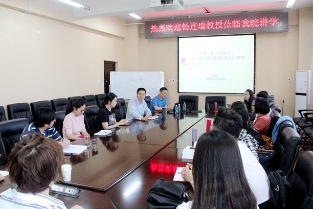 中国海洋大学外国语学院院长杨连瑞教授应邀于5月20日下午在中教515室作了题为“中国二语习得研究:从二语习得到国际通用语研究”的学术报告,报告由ob真人外国语学院院长李京廉教授主持,学院部分教师和研究生聆听了讲座。