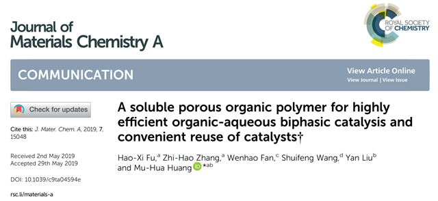 ob真人竞猜在可溶性有机多孔聚合物用于两相催化方面取得研究进展