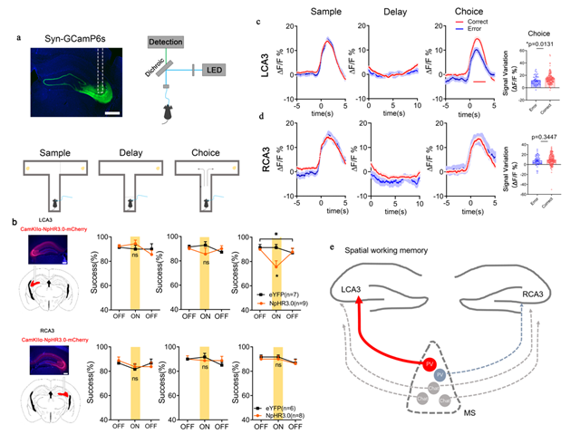 ob真人竞猜在《Nature Communications》发文探究小鼠海马CA3区在空间工作记忆中的单侧化功能