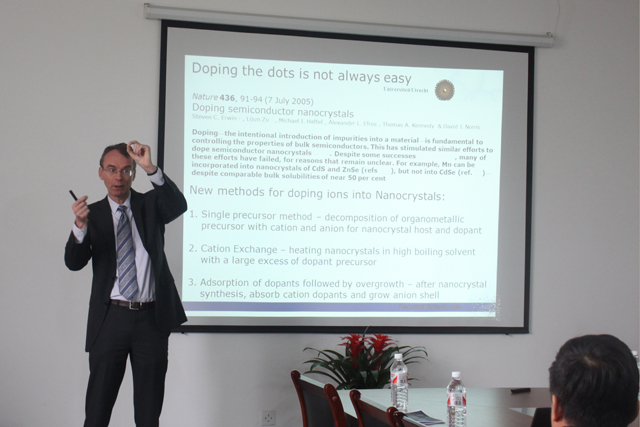 应材料学院和纳米光子学与超精密光电北京市重点实验室的邀请,荷兰乌得勒支大学的Andries Meijerink教授于11月8日访问了我校,并在材料学院会议室(5号教学楼 502)作了题为“Doping the dots”的学术报告。