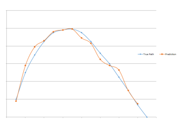 中型组机器人普遍采用全景反射镜头来获取球场的全向信息。但是该种镜头会受到其高度的限制,高过反射镜的图像无法获取,因此守门员机器对比赛中常常出现的远距离吊射无法应对。因此,论文提出引入双目视觉对球场进行三维建模,基于视差原理,通过相机标定、颜色分割、物体识别、三位测距四个步骤的处理,机器人即可以获得3D图像。ob真人机器人足球队使用的是两个广角120度摄像头,采用广角镜头是为了增加机器的可视范围以及降低成本,但是所得到的图像畸变严重。因此后期采用算法进行了矫正处理,效果如图5及图6所示。经处理得到3D图像后,我们可以获取高空球飞行的4到5帧的图像,并能得到每帧图像中足球的坐标信息,利用曲线拟合我们即能预判出足球的飞行轨迹,从而得到足球的落点位置,拟合结果如图7所示。