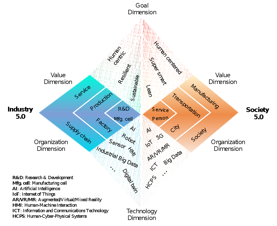 文章围绕当前工业领域热点“工业5.0”与新型概念“社会5.0”的区别、互补以及共同演进趋势进行了深度讨论,旨在阐明工业5.0和社会5.0两种提法共存情况下的本质诉求以及未来的发展方向。工业5.0是一种面向未来工业、富有远见的新范式,是对工业4.0单纯追求技术驱动的修正,追寻以人为本、可持续、富有韧性的价值创造。社会5.0则是对未来超智能社会的一种构想,让每个人都可以享受到技术发展的红利,旨在构建一个以人为中心、超智能化、精益型的社会。为了对工业5.0和社会5.0有更深层次的认知,进一步从目标、价值、组织和技术四个维度进行了比较和关联分析。虽然工业5.0和社会5.0关注的领域范围、关键技术等有所区别,但是在“以人为本”这一点上形成了共识:(1)工业领域里,人是生产制造活动的“主宰者”;(2)社会活动中,人民幸福提升、价值创造是核心。在未来,工业5.0和社会5.0也面临着一系列共同挑战和机遇,需要进一步突破人-信息-物理系统(HCPS)、人的数字孪生(HDT)、人-机器人协同作业(HRC)等核心技术,发掘具有创造性的应用场景和价值增长点。