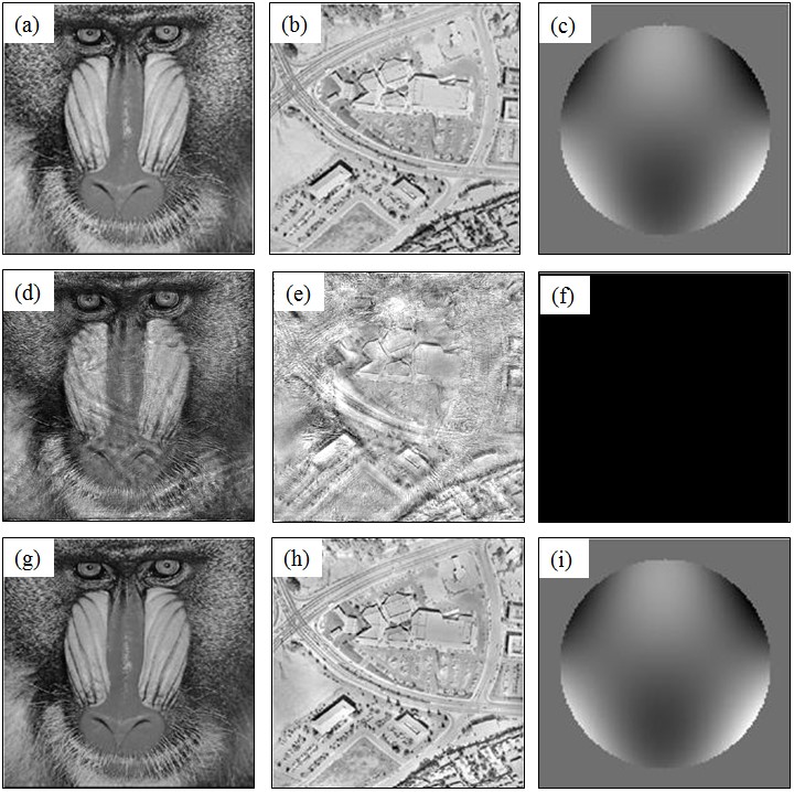 针对传统傅里叶叠层显微成像引入的各种像差,ob真人许廷发教授科研团队提出了一种新颖的基于叠层衍射成像技术的像差校正方法。该方法结合了仿真和实验验证,并应用于人体血细胞的显微成像。主要利用叠层衍射成像技术的优化策略对傅里叶叠层显微成像重建进行改进。在更新成像过程中的频谱和光瞳函数时,针对传统更新策略因仅仅依赖频谱和光瞳函数最大值而对突变敏感的局限性,创新性地引入更新因子自适应调控最大值和当前值之间的最佳比例,从而有效避免突变的影响,提高系统成像的清晰程度。将泽尼克多项式系数假定为空间变化的函数,以仿真空间变化的像差,利用提出的方法重建泽尼克多项式系数,并对加载混合像差的仿真图像以及实际采样的人体血细胞图像进行重构。实验结果表明,本文方法可以准确重建像差系数。此外,重构图像清晰度显著提高,可以准确分辨细胞轮廓。加载混和像差的仿真实验结果如下。图2 (a)-(c)依次为原始强度图,相位图和光瞳函数,(d)-(f)依次为未更新光瞳函数策略的重建结果,(g)-(i)为利用本方法的重建结果。可以看出,在混合像差的影响下,传统的未更新光瞳函数的重建图像较为模糊。采用本文光瞳函数更新方法后,图像重建结果清晰度有明显提高。