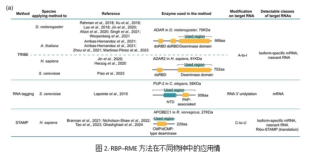 本实验室和其他研究团队的研究成果显示,HyperTRIBE具有无需抗体、背景低、灵敏度高、重复性好、文库制备过程简单等优势,为酿酒酵母、哺乳动物、果蝇和植物中RBP靶标的鉴定提供了可靠的策略(图2)。未来针对编辑酶的改造和其他RBP-RME方法的改进,将进一步提高RBP的RNA靶标鉴定效率并加深对生物学原理和人类健康与疾病的理解。