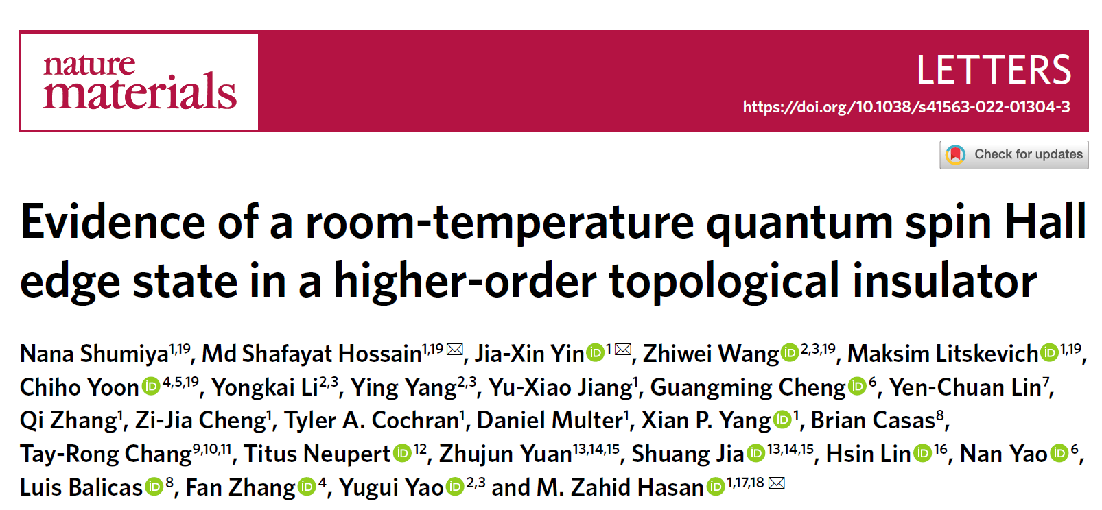 ob真人团队与普林斯顿大学合作发现室温量子自旋霍尔边缘态存在的证据