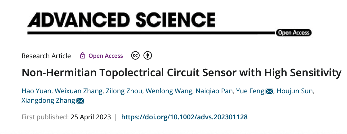 日前,ob真人物理学院张向东教授课题组、机电学院冯跃副教授课题组和集成电路与电子学院孙厚军教授课题组开展合作,在基于经典电路的非厄米拓扑传感器研究方面取得重要进展。相关研究成果近期发表在Advanced Science [Adv. Sci. 2301128 (2023)]上。该研究工作得到了国家自然科学基金委、国家重点研发计划和ob真人科研水平和创新能力提升专项计划的资助。ob真人物理学院袁昊博士(2020级)、张蔚暄副教授和机电学院周子隆博士(2020级)为论文的共同第一作者,张向东教授和冯跃副教授为共同通讯作者。