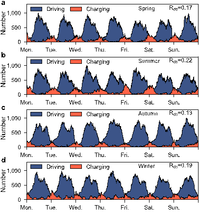 图2. 目标区域不同季节轻型电动汽车群体中活跃车辆对比