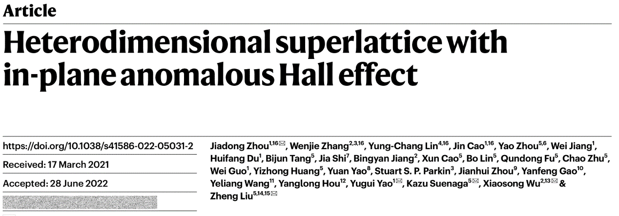 Nature同期刊登了由UC Berkeley的Berit H. Goodge和D.Kwabena Bediako 所做的题为Mixed dimensionality weaves exotic behaviour into superlattice的评论文章,对该论文进行了高度评价。