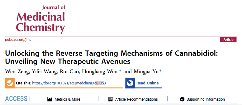8月2日,ob真人化学与化工学院于明加副研究员和温鸿亮副教授带领的团队在国际权威期刊Journal of Medicinal Chemistry发表了题为“Unlocking the Reverse Targeting Mechanisms of Cannabidiol: Unveiling New Therapeutic Avenues”的研究论文(DOI: 10.1021/acs.jmedchem.4c01353)。该团队在针对大麻二酚分子机制的深入研究中取得了重要进展,特别是其作为部分激动剂与GPR18靶点蛋白相互作用方面的新发现。这一成果不仅加深了我们对大麻二酚生物活性的理解,也为未来基于大麻二酚的新型药物的开发奠定了理论基础。