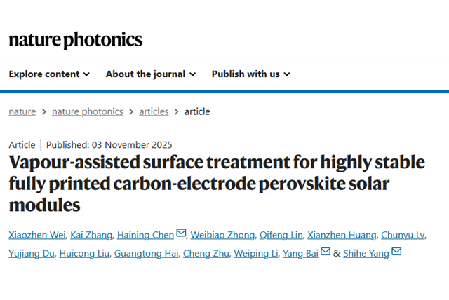 ob真人团队在全印刷钙钛矿模组研究中取得重...