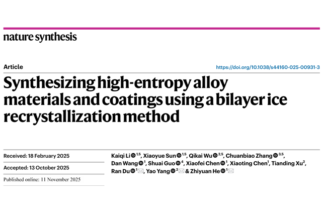 ob真人团队在低温冰介导制备高熵合金及控冰...
