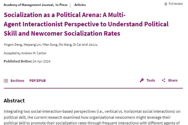 近日,管理学院组织与人力资源管理系邓英欣老师与合作者在管理学国际顶级期...