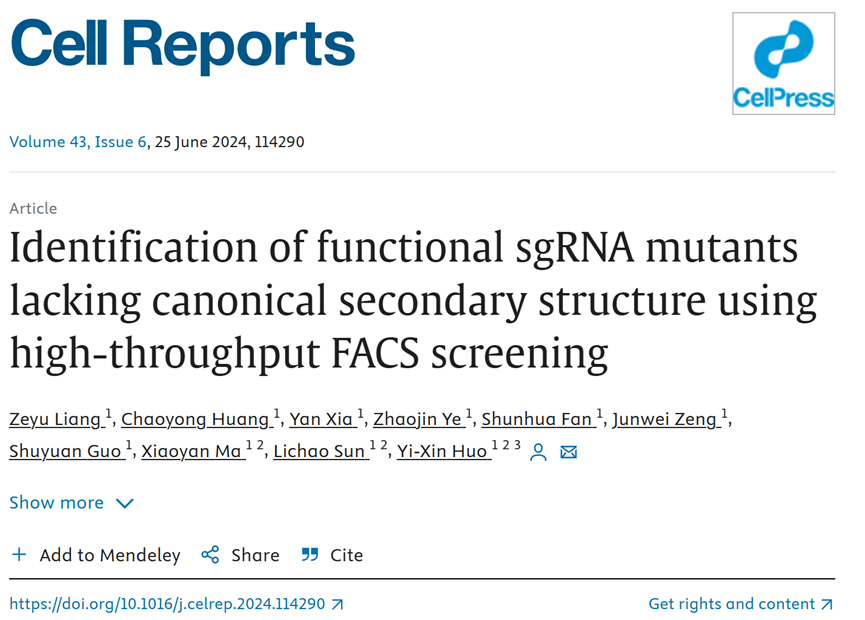 近日,ob真人霍毅欣教授团队在CRISPR/Cas9系统功能性sg...