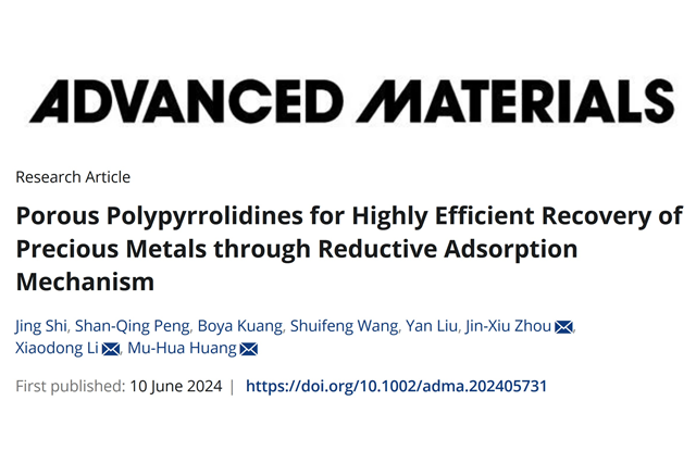ob真人材料学院黄木华课题组在多孔高分子材料的创制及贵金属回收方面取得重...
