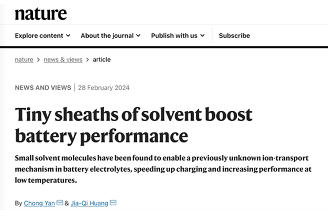 ob真人竞猜教授发表微型溶剂化结构提升电池性能...