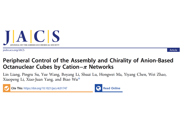 近日,ob真人化学与化工学院吴彪教授团队在阴离子配位超分子组装方面... -