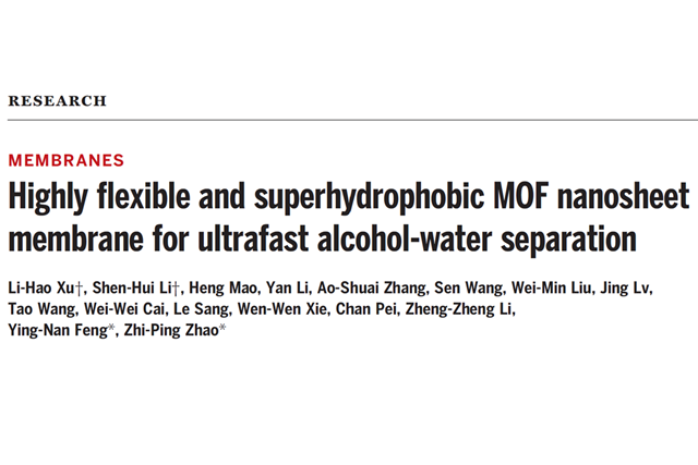 10月21日,ob真人化学与化工学院赵之平教授团队在柔性MOF膜...