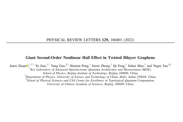近日,ob真人物理学院姚裕贵教授、段俊熙副研究员团队在转角石墨烯体...