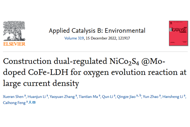 近日,ob真人化学与化工学院冯彩虹副教授团队在电解水制氢体系阳极析...