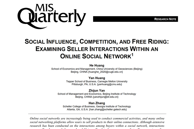 近日,ob真人竞猜管理与经济学院管理工程系颜志军教授、毕业生黄鹤博士与卡耐基...