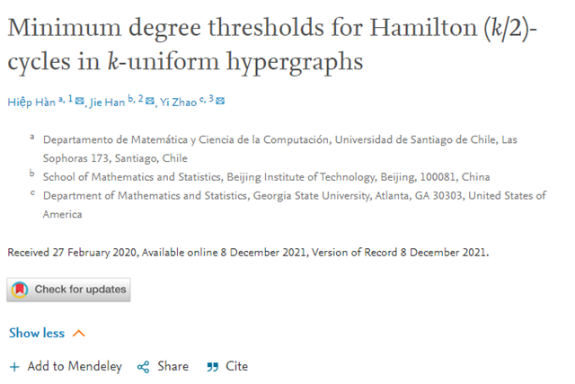日前,ob真人数学与统计学院韩杰教授在国际图论与组合数学顶级学术期...