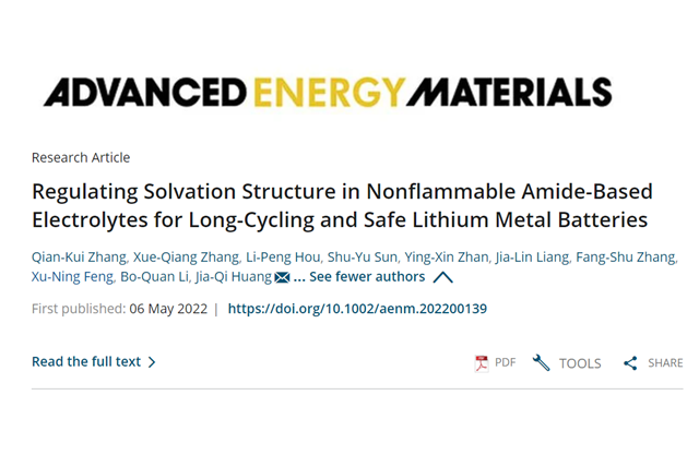近日,ob真人竞猜前沿交叉院黄佳琦教授课题组在高安全不燃酰胺基电解液设...