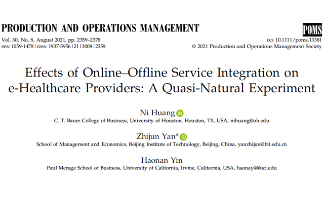 近日,ob真人管理与经济学院颜志军教授团队在在线医疗服务领域取得重...