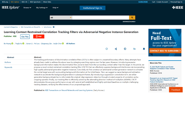 近日,ob真人光电学院许廷发科研团队在对抗学习相关跟踪领域取得新进...